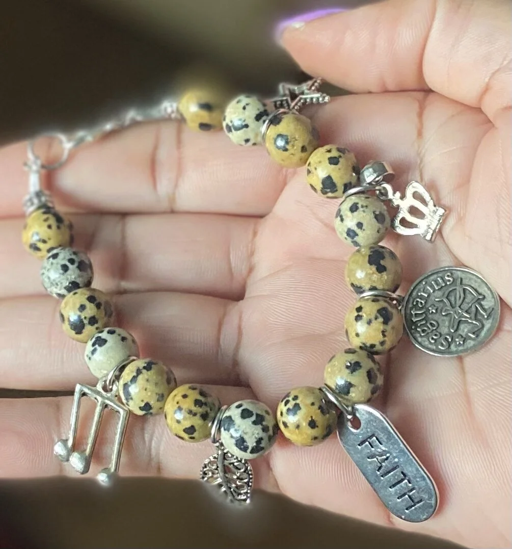 Dalmatian Jasper is known as a nurturing stone, with its ability to bring out the child within. It helps bring clarity of mind to reveal one's strengths and weaknesses; bringing in a calm sense of tranquility, wholeness, and control.